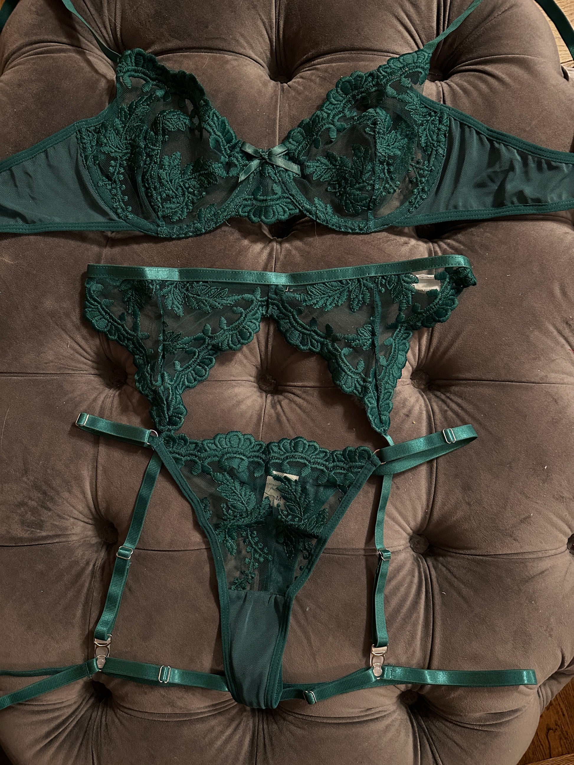 A stunning 5 piece ensemble for a daring adventure. Emerald green.